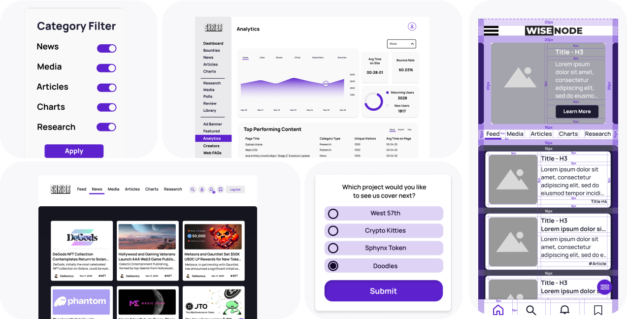 Skribr is a brand that is focused on educating users on cryptocurrencies. As a brand, it should feel engaging and exciting about what the future of crypto holds, while still being well organized to make information easy to find.